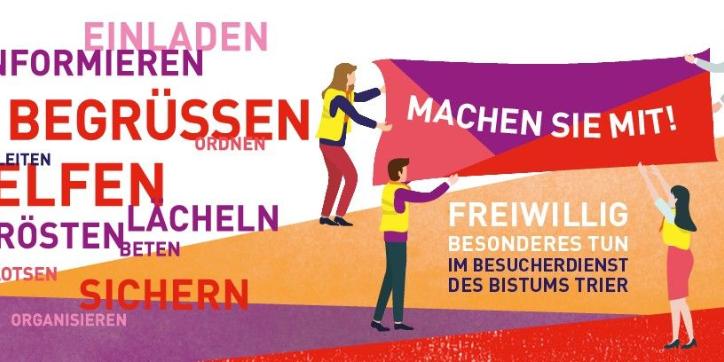 Trier – Sie begleiten, organisieren, informieren – kurzum, die Freiwilligen des Besucherdienstes im Bistum Trier packen tatkräftig mit an. Das Team sucht nun Verstärkung: neue Helferinnen und Helfer, die Lust haben, sich ehrenamtlich zu engagieren und bei der Organisation und Durchführung kirchlicher Veranstaltungen wie etwa den Heilig-Rock-Tagen 2022 mitzuwirken. Die Ehrenamtlichen entscheiden dabei selbst, wie viel Zeit sie einbringen möchten. Interessierte können sich am 19. November um 17 Uhr in der Cafeteria des Bischöflichen Generalvikariats informieren. Um eine vorherige Anmeldung unter Tel. 0651-7105-568 oder per E-Mail an besucherdienst@bistum-trier.de wird gebeten. Es gelten die aktuellen Corona-Maßnahmen.