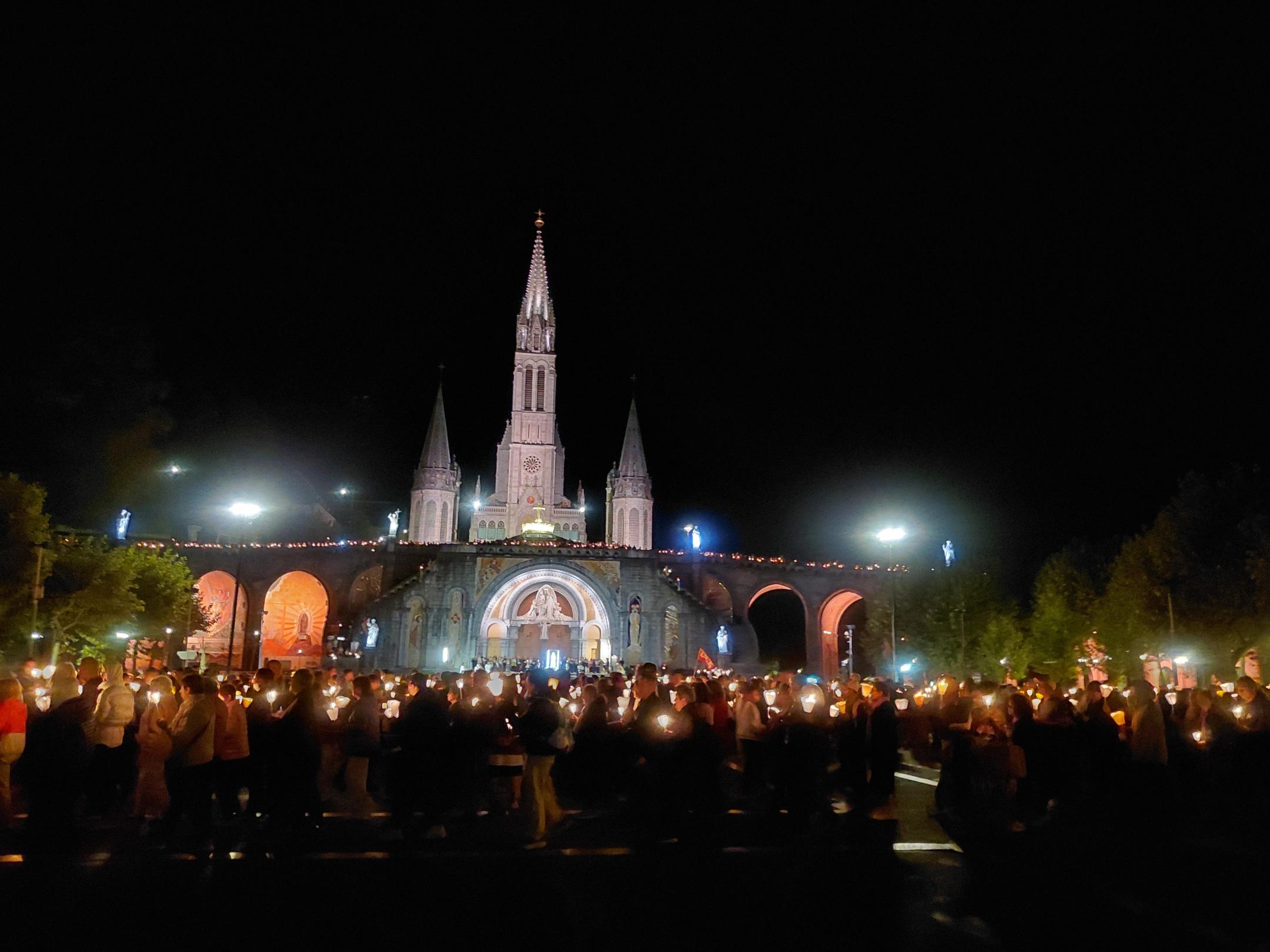 Wallfahrt nach Lourdes :Bistumskerze leuchtet in Lourdes