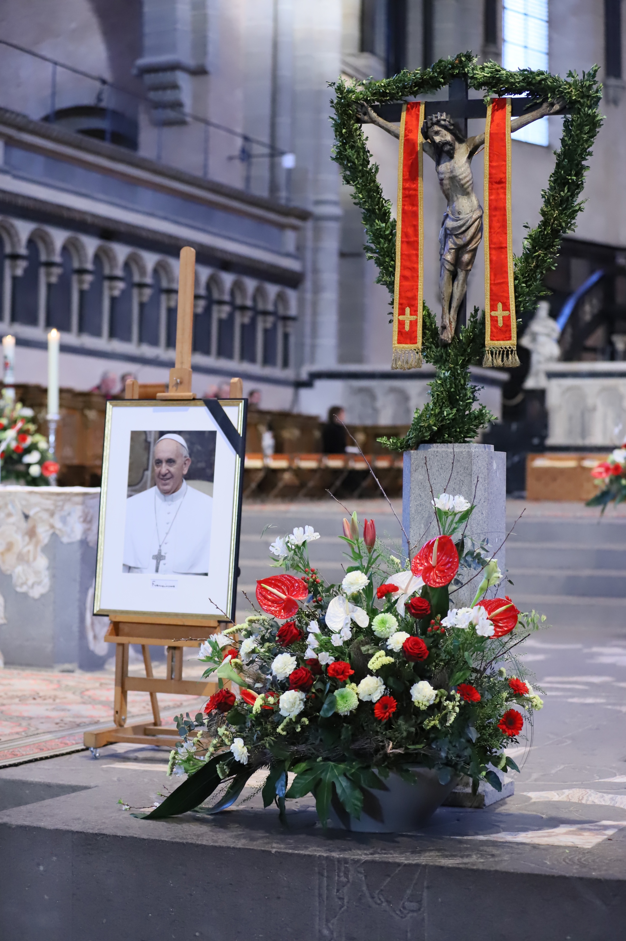 Der Bischof zitierte aus dem Johannesevangelium: „Gott hat die Welt so sehr geliebt, dass er seinen einzigen Sohn hingab, damit jeder, der an ihn glaubt, nicht verloren geht, sondern ewiges Leben hat.“ Auch wenn sich das Pontifikat nicht auf einen Punkt bringen lasse, drücke doch dieses Bibelwort wesentlich aus, wofür Papst Franziskus bis zum letzten Atemzug eingestanden sei. „Der Herr lohne Papst Franziskus all seine Mühen und lasse sie reiche Frucht tragen im Leben der Kirche und zum Wohl der ganzen Menschheit.“