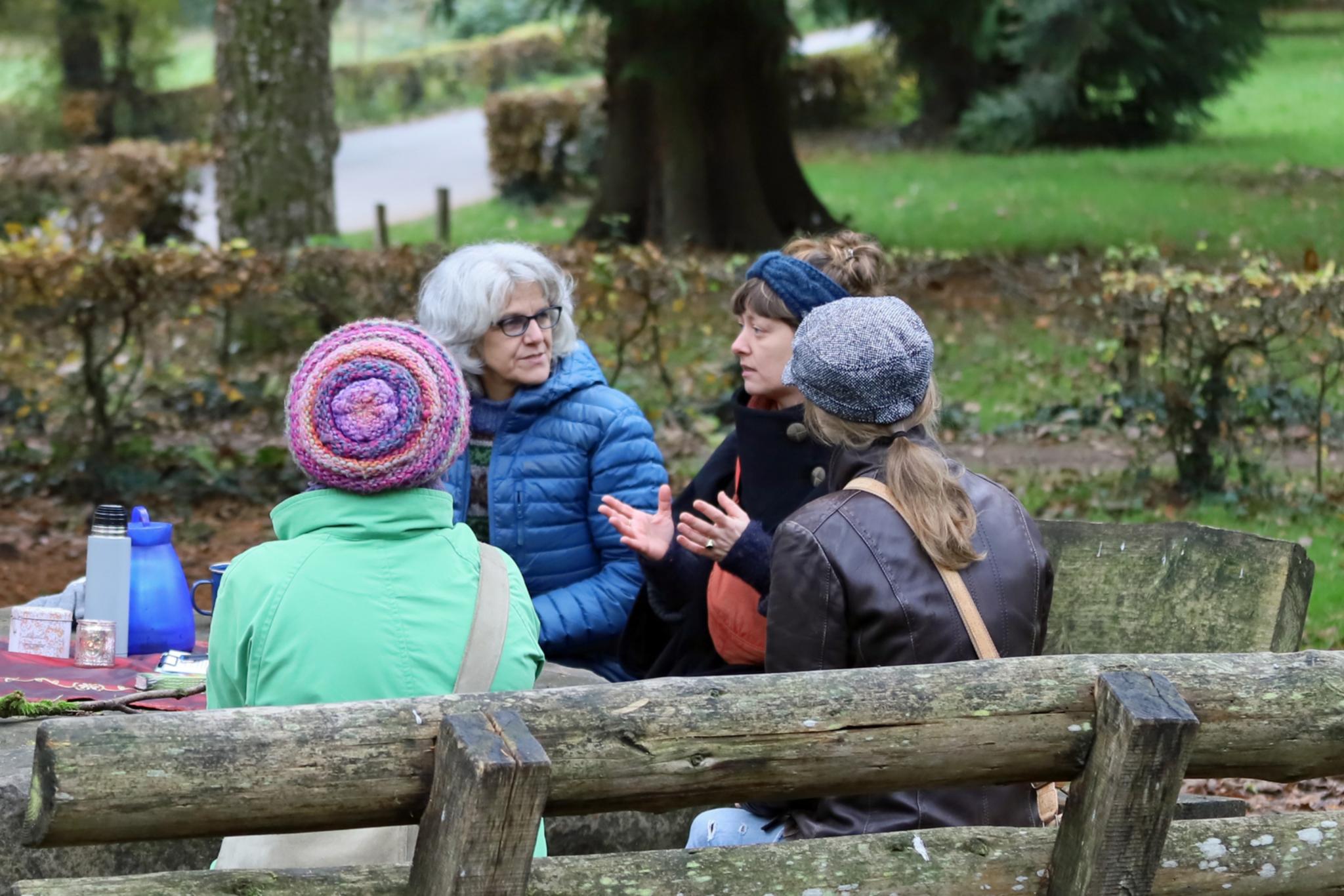 Anlass zu dieser Suche bot die jährlich in Trier stattfindende „Woche der Stille“, die dieses Jahr bereits zum sechsten Mal stattgefunden hat. In diesem Rahmen lud der Kneipp-Verein Trier ein, gemeinsam Zeit in der Natur zu verbringen. Eingangs informierte Sigrid Ertl, erste Vereinsvorsitzende, über den Verein und über Pfarrer Sebastian Kneipp, dessen Lehre im ausgehenden 19. Jahrhundert den Anstoß zur Gründung der heute bekannten Kneipp-Vereine gab. Nachdem Ertl die Bedeutung der Stille in dessen Gesundheitsverfahren betont hatte, machte die Gruppe sich auf den Weg. An einem von buntem Herbstlaub eingebetteten Ort abseits der Straßen und Wege, trug Viviane French, zweite Vorsitzende des Kneipp-Vereins, einen Auszug aus Rilkes „Das Buch vom mönchischen Leben“ vor. Mit einem Lied überließ sie die Teilnehmerinnen für eine halbe Stunde sich selbst, dem Wald und der Stille. Nach dieser Einzelzeit voller Ruhe kam man erneut zusammen und tauschte sich über die Erfahrungen im Wald bei Ingwer- und Kräutertee aus. „Sehr froh, zufrieden und dankbar“, blickte Viviane French auf die von ihr ausgerichtete Veranstaltung zurück. „Das Thema dieser Veranstaltung war auch mir eine Einladung, mich noch mal mehr mit der Stille zu beschäftigen.“ Auf die Frage, ob sie und der Kneipp-Verein sich vorstellen könnten, im nächsten Jahr erneut eine Veranstaltung anzubieten, gab es eine klare Zusage: „Nächstes Jahr wird es eine ähnliche Veranstaltung wieder geben.“ Lisa Schiffner aus Trier, die zum ersten Mal an der „Woche der Stille“ teilgenommen hat, gefällt die Idee, der Stille eine ganze Woche zu widmen. „Ich bin sehr dankbar für dieses Angebot heute. Ich nehme auf jeden Fall etwas für mich mit.“ Diesen Eindruck teilten auch die übrigen Teilnehmerinnen.