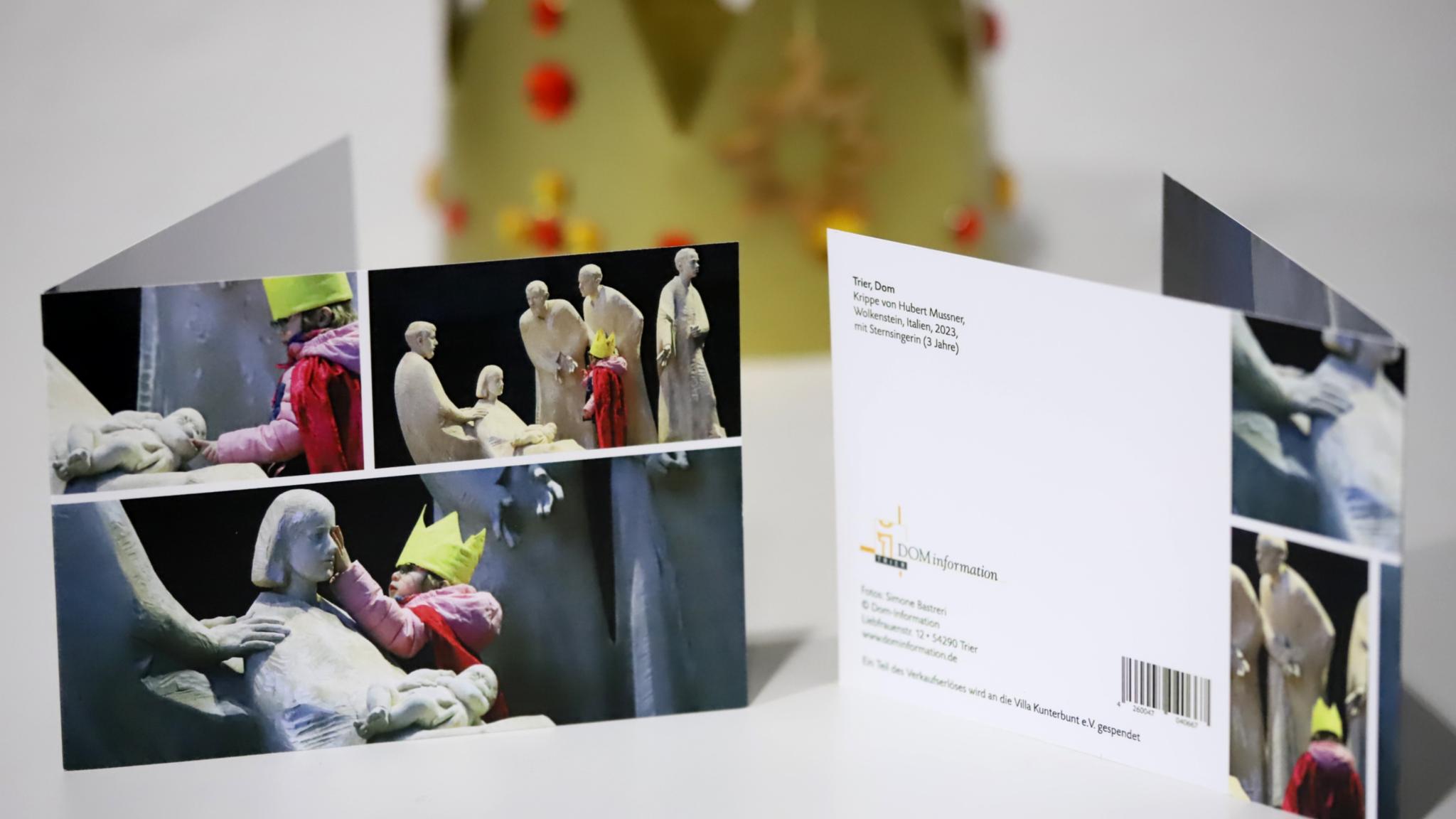 Die Dominformation verkauft Weihnachtskarten mit Motiven der Domkrippe. Ein Teil des Erlöses geht an die Villa Kunterbunt.